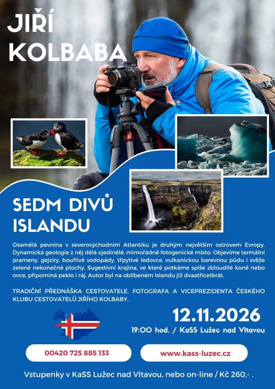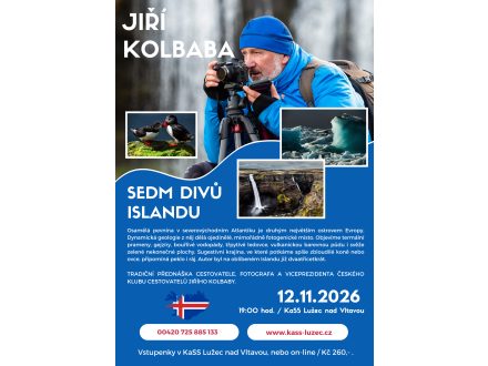 Tradiční cestovatelská přednáška Jiřího Kolbaby v KD Lužec nad Vltavou.