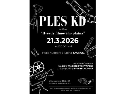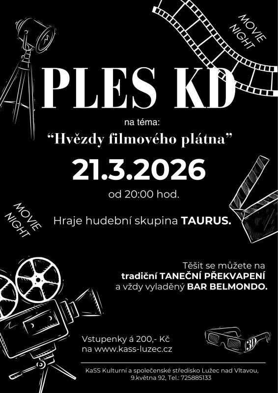 PLES KD "Hvězdy filmového plátna" Tradiční tematický ples kulturního a společenského střediska Lužec nad Vltavou.